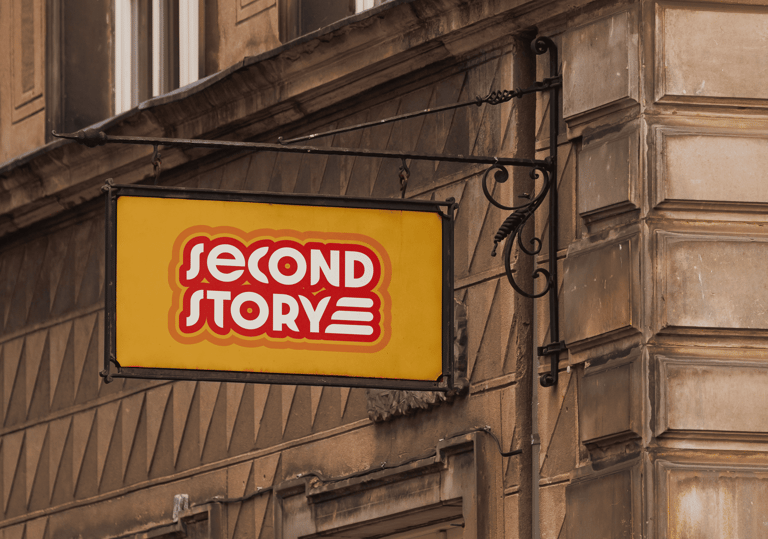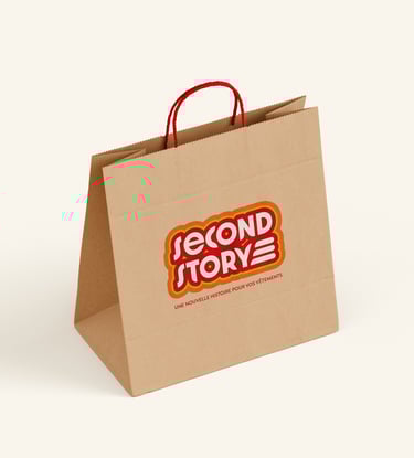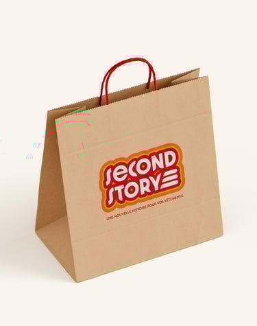 Création de l'identité visuelle d'une friperie. Son slogan est le suivant : " Une nouvelle histoire pour vos vêtements. "