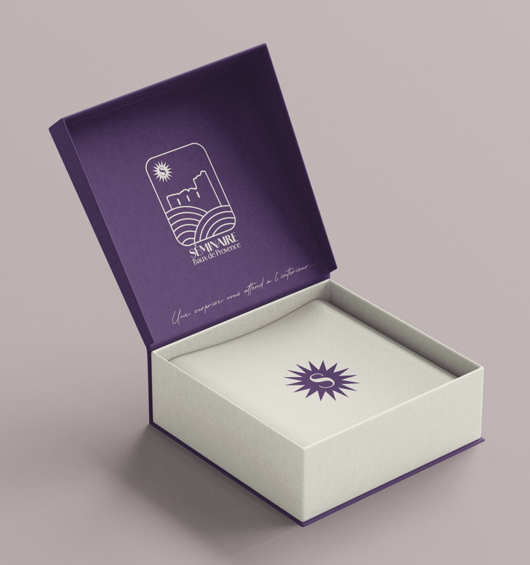 J'ai choisi une typographie simple et élégante et les couleurs olive et lavande pour faire référence à la Provence.