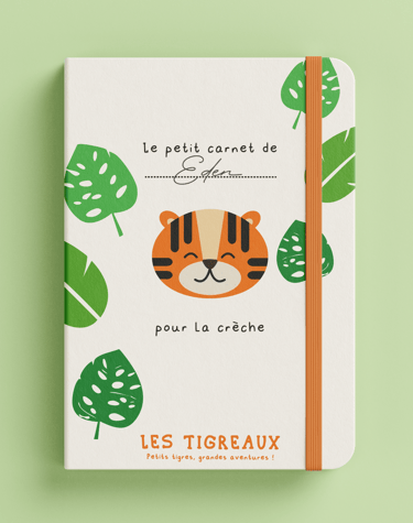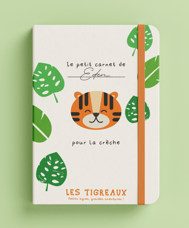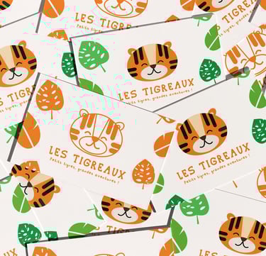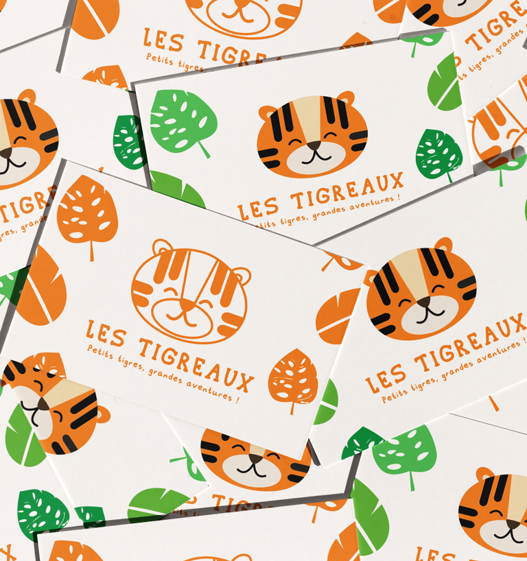 J'ai donc choisi de créer un logo tigre, aux traies doux et enfantins. J'ai agrémenté l'identité visuelle d'un motif jungle.